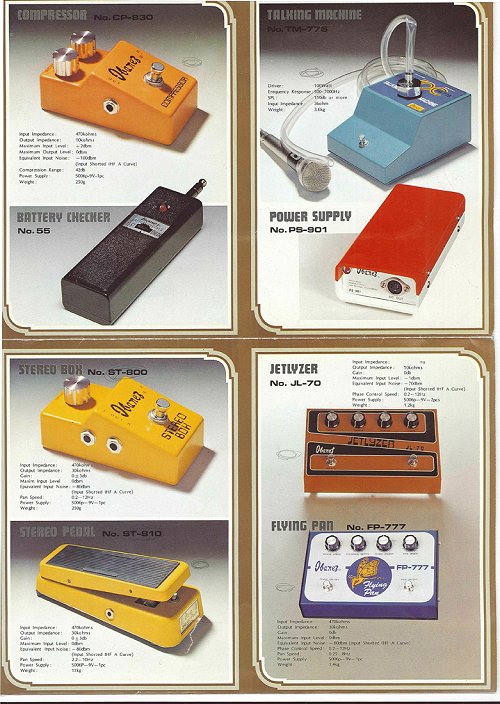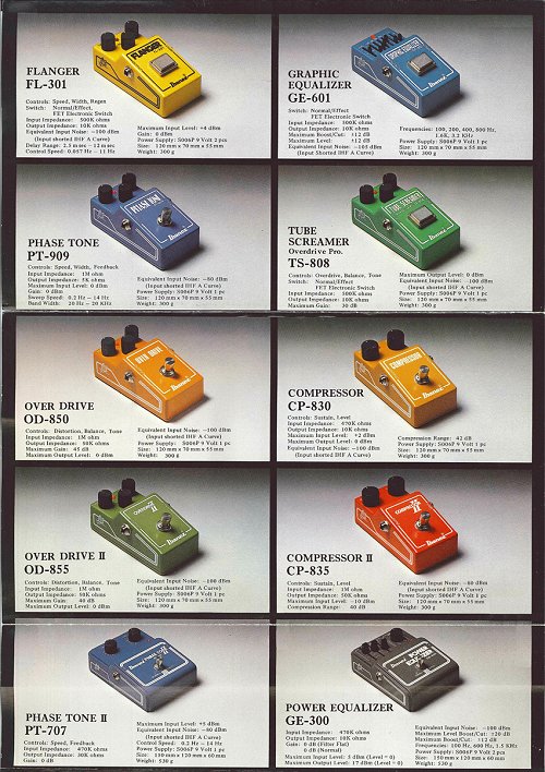 IBANEZ는 70년대 중반쯤부터 이펙트 페달, 앰프, 마이크등을 발표하기 시작했고 이 카탈로그의 이펙트 페달이 IBANEZ 의 초기 제품입니다.