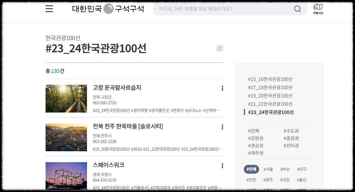 33개의 관광지가 [23_24 한국관광 100선]에 처음 이름을 올렸습니다.