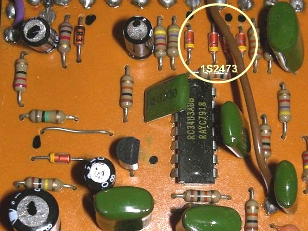 1S2473 from ROHM(Japan) is a diode used for BOSS Silver screw OD-1 Overdrive with the Raytheon RC3403ADB 14pin Op Amp chip.