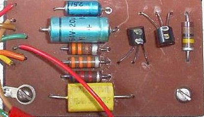 주로 2개의 AC128 게르마늄 트랜지스터와 출력 캐패시터에 있는 2개의 컬렉터 저항이 있습니다.