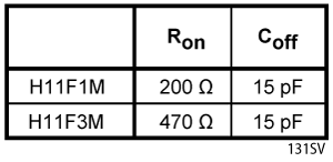 Notionally, we want the lowest possible Ron (to give optimal muting) and the lowest possibleCoff (to give minimal filtering of the audio signal). However, in this case, lower Coff trumps lower Ron and TLP222G is the better choice (but it may not make much difference in practice). The Fairchild alternative also comes in two variations, the H11F1M and the H11F3M. The datasheet also refers to the H11F2M, but this is an obsolete part. Here is a summary of the relevant differences: